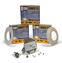 Convert old unused can lights with this innovative light conversion kit. In just minutes you can convert your can light to accept hanging lights ceiling light fixtures and other decorative lighting. Perfect for entry lighting workshops carports or wherever can lighting has been installed. Adapts to 5" and 6" cans. 35 pound load rating for ceiling fixtures. Includes a decorative medallion cover. Please note: this kit is designed for incandescent lighting only. Mount only to construction cans with bar hangers.